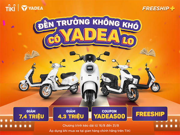 Đến hẹn lại lên, một mùa khai trường nữa lại tới. Để các bạn học sinh, sinh viên có thể dễ dàng sở hữu mẫu xe điện yêu thích. Yadea giới thiệu chương trình mua xe khuyến mãi với mức giá tốt khi đặt hàng trên TIKI.