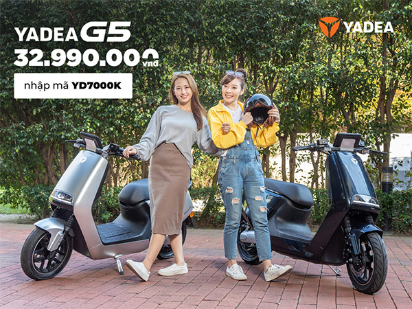 YADEA bắt tay cùng Tiki trong chương trình Sale huyền thoại trong tháng 10: SĂN DEAL YADEA - HÀNG TRIỆU ƯU ĐÃI. Mang đến cho khách hàng những ưu đãi cực “khủng”: ưu đãi tới 7 triệu đồng khi mua xe máy điện cao cấp G5. Giá xe YADEA G5 chỉ còn 32.000.000 VNĐ. Chỉ cần nhập mã: YD7000k để giảm trực tiếp vào giá xe khi mua hàng trên Tiki.