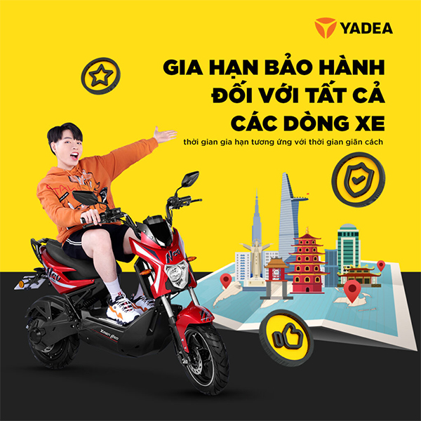 YADEA sẽ kéo dài thời gian bảo hành tương ứng với thời gian giãn cách. Áp dụng tại các tỉnh thành đã và đang tiến hành giãn cách xã hội theo Chỉ thị 16.