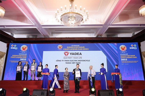 Ngày 14.3.2023, Công ty TNHH ELECTRIC MOTORCYCLE YADEA VIỆT NAM vinh dự đạt danh hiệu Hàng Việt Nam Chất Lượng Cao do người tiêu dùng bình chọn: ngành hàng xe và phụ tùng xe.